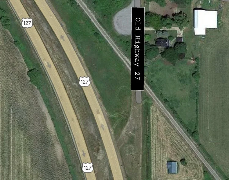 There used to be a railroad crossing is along a former alignment of US 27 between Lansing and Ithaca, Michigan. Old highway 27 was rerouted to the west and renamed as highway 127.